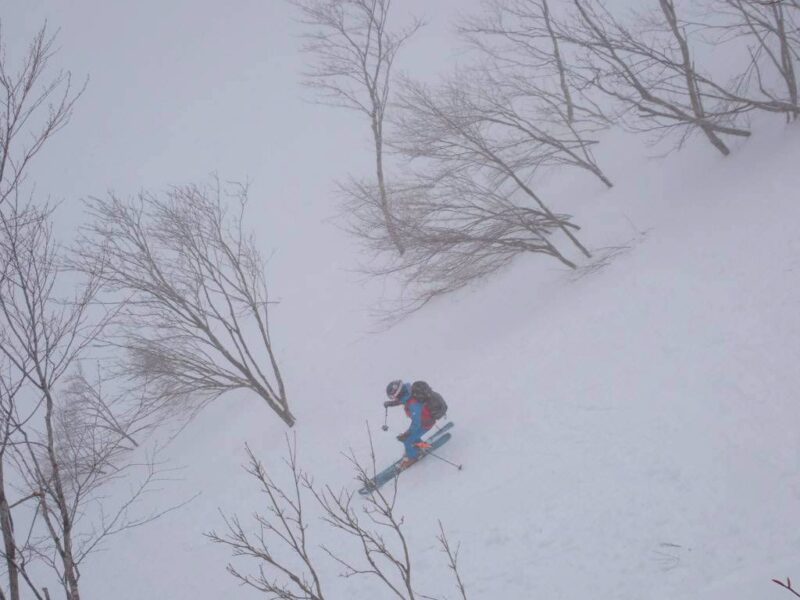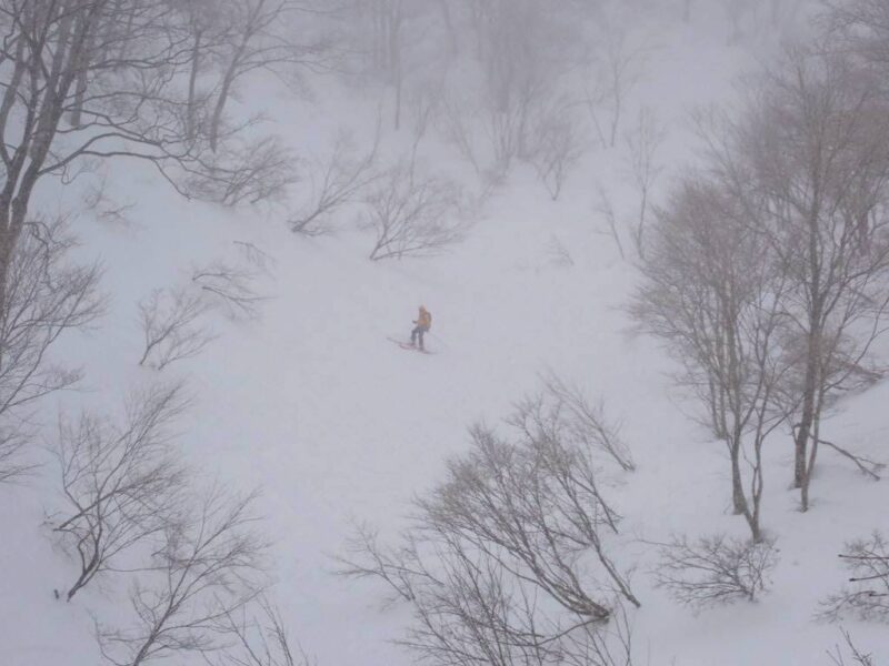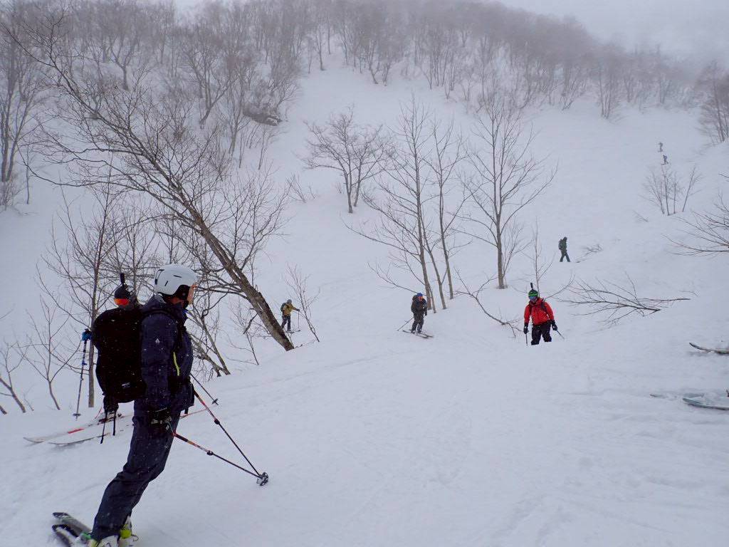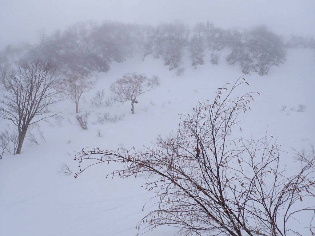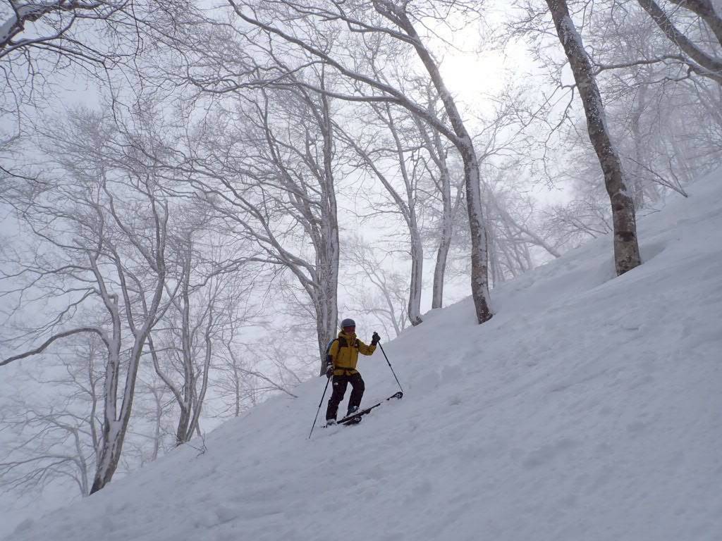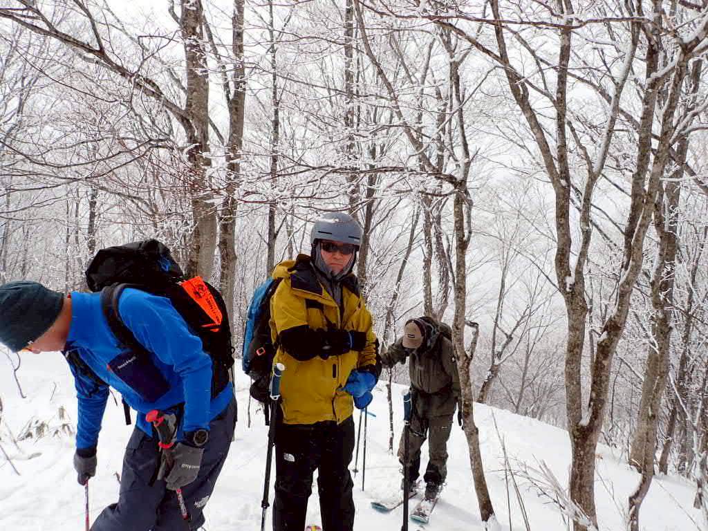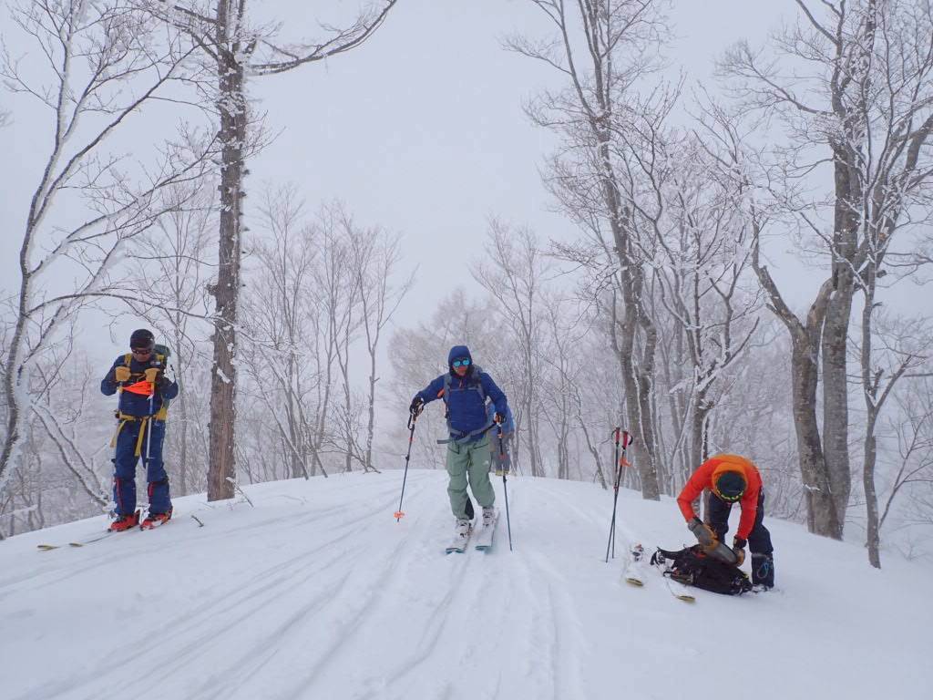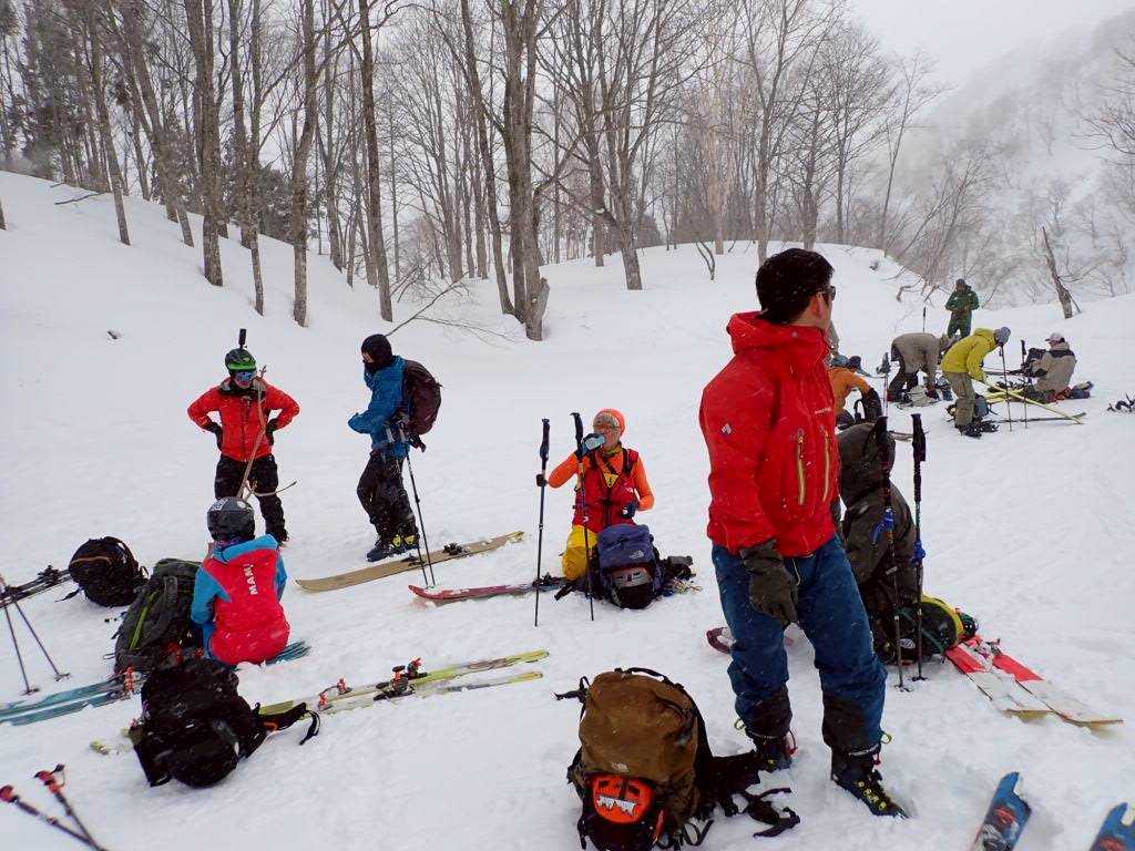 しかし雪はウインドスラブ気味で、かつ重めのコンディション。思うように板が走らず、転倒者が続出する展開に。裏鵯に到着する頃には、体力もかなり消耗していた。