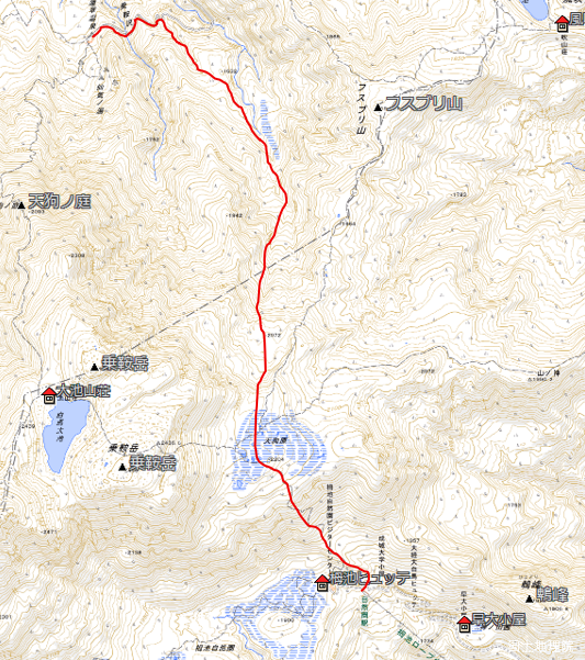 当初は天狗原まで登り返して栂池へ戻る計画だったが、メンバー全員の希望により木地屋ルートでの下山へ変更。前日に木地屋14時着でタクシーを予約しておいた。