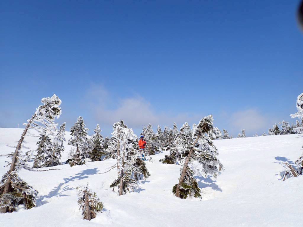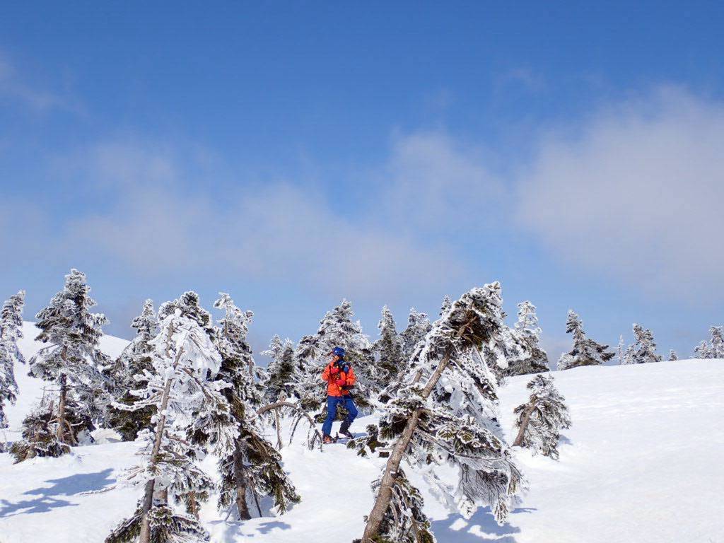 実際に入山してみると、予想に反して風はそれほど強くなく、穏やかなコンディション。自然が作り出す雪の造形や広がる展望を楽しみながら、快適に高度を上げていくことができた。