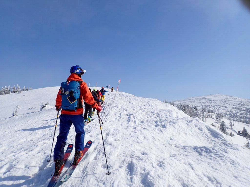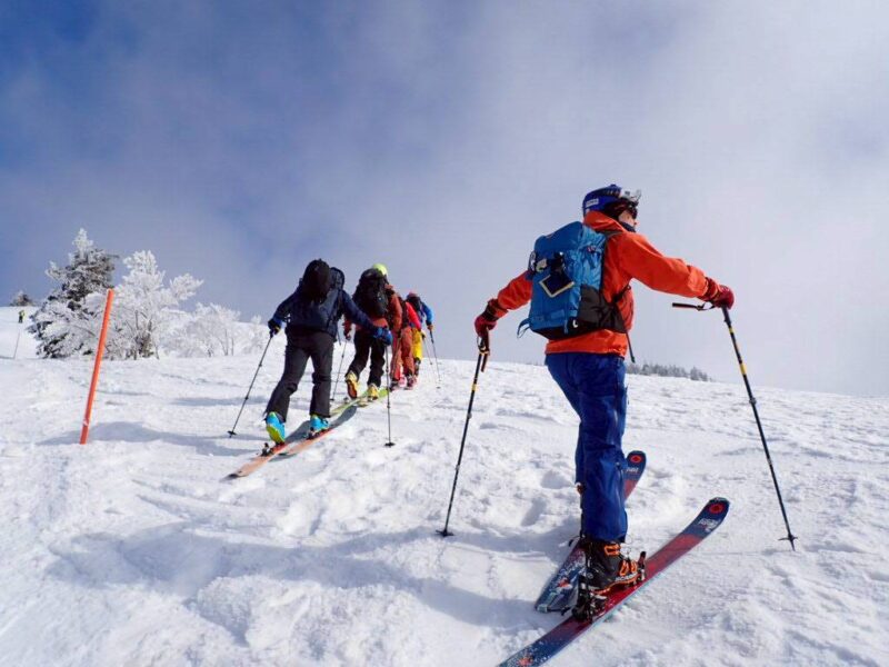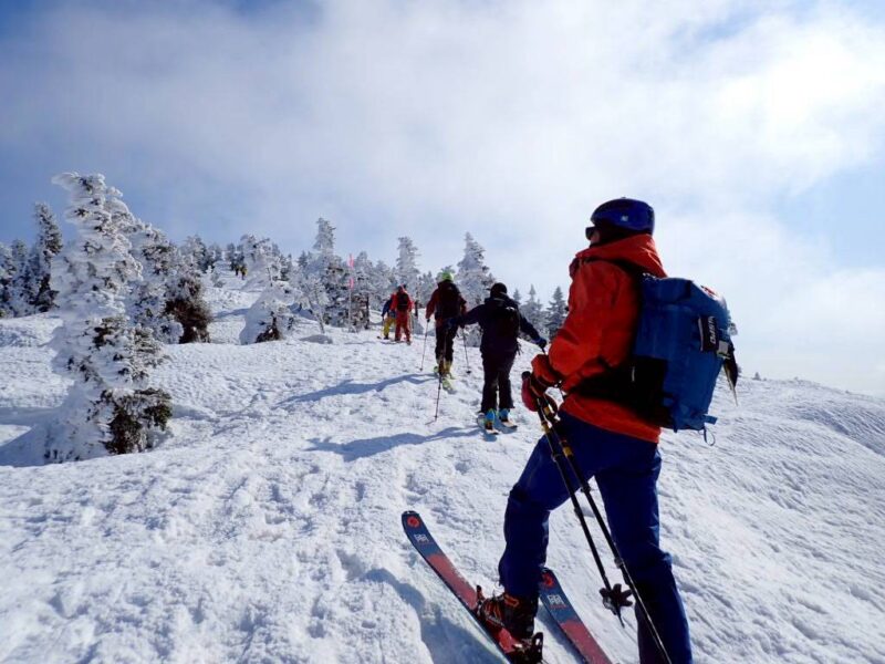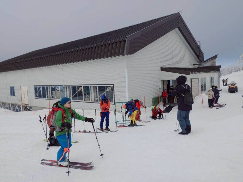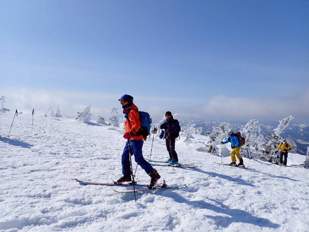 当日は天候に恵まれたため、まずは行けるところまで登り、状況を見ながら滑走ルートを判断する方針でスタート。