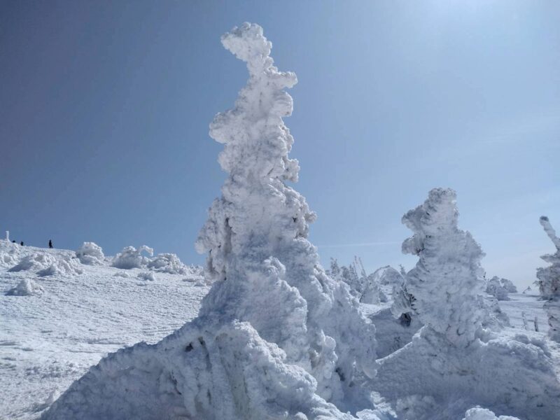 天気予報は晴れながらも風が強い予報で、現地の宿やニュースでは「樹氷(モンスター)もかなり溶け、季節が1か月ほど早い」との情報が入っていた。