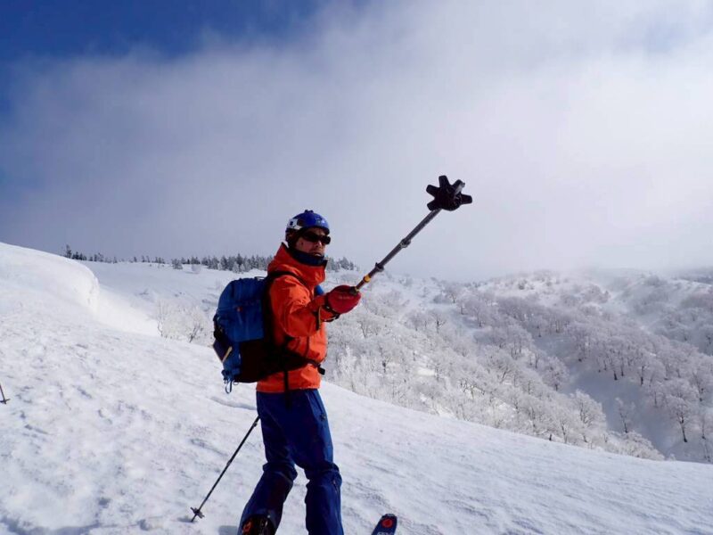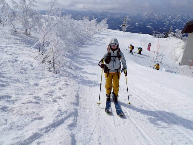 その後は登り返しを行い、時間を見ながら2本目へ。下山時刻を考慮し、ロープウェイ山頂方面へ戻るラインを選択し、滑走とシールハイクを織り交ぜながら行動した。