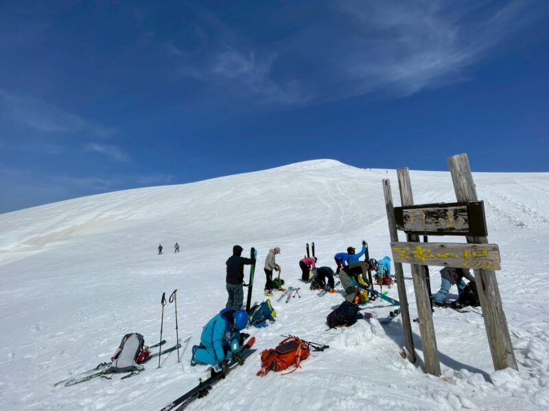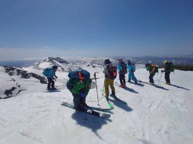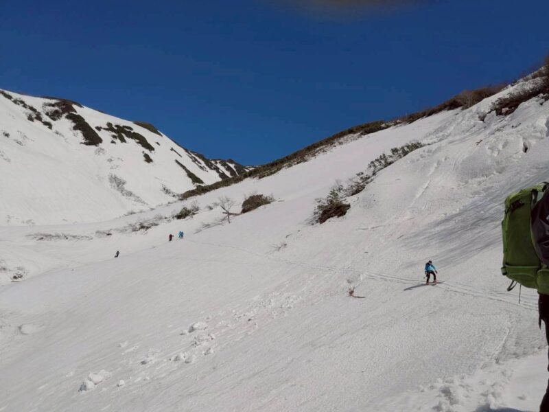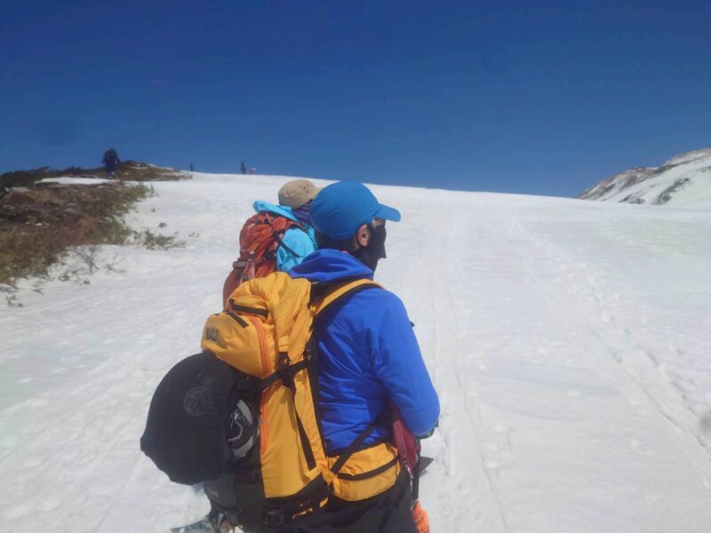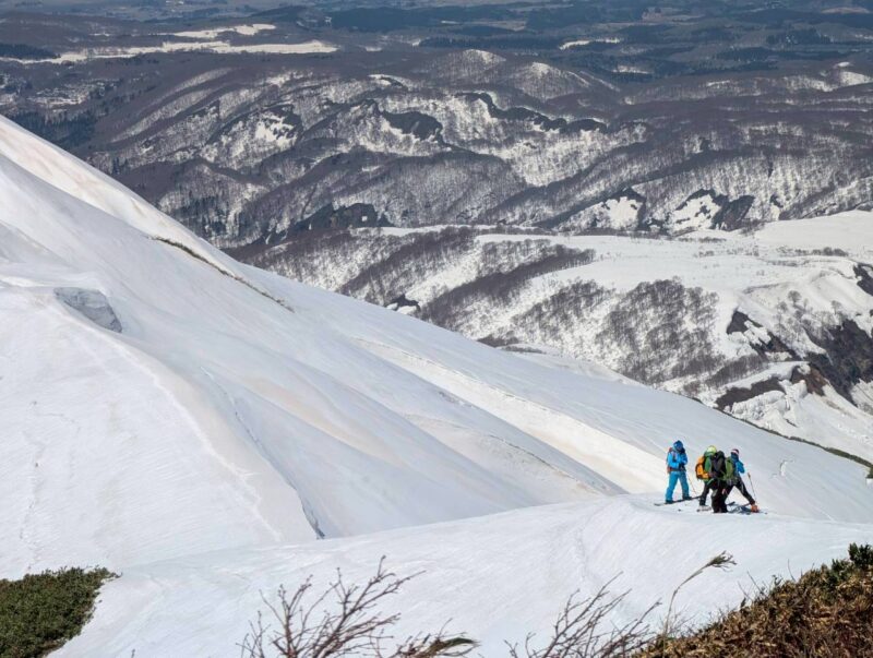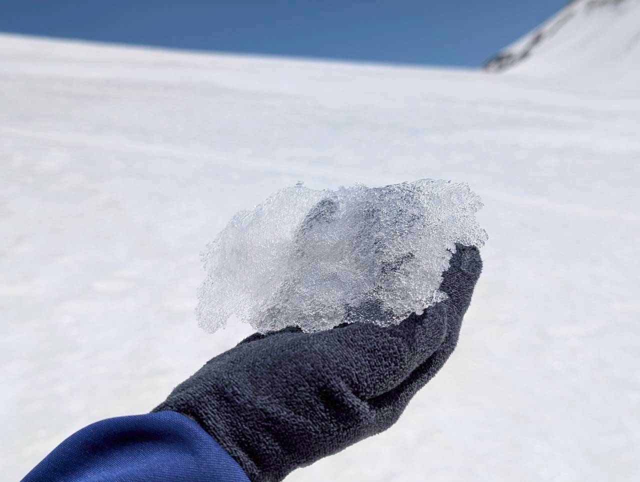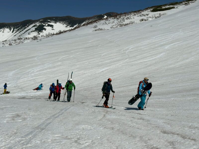 今年は雪解けが早く、このルートもあと1週間ほどが限界とのこと。さらに、前日の冷え込みによって雪面は締まり、例年よりも軽く滑りやすい、月山では珍しいコンディションだった。