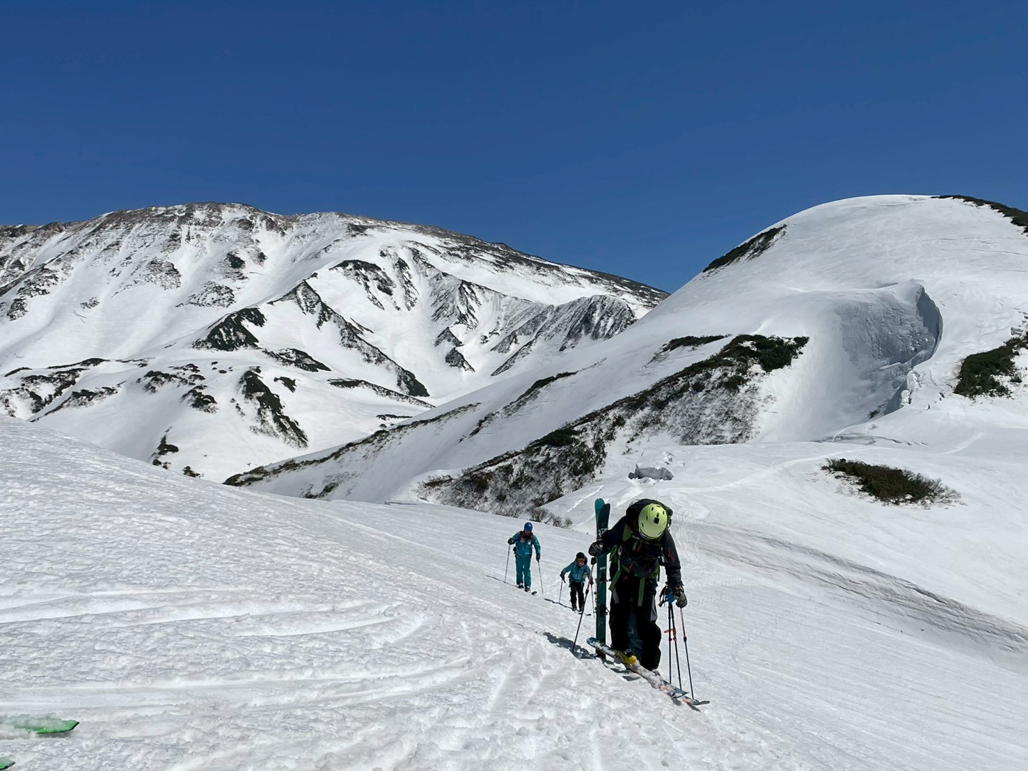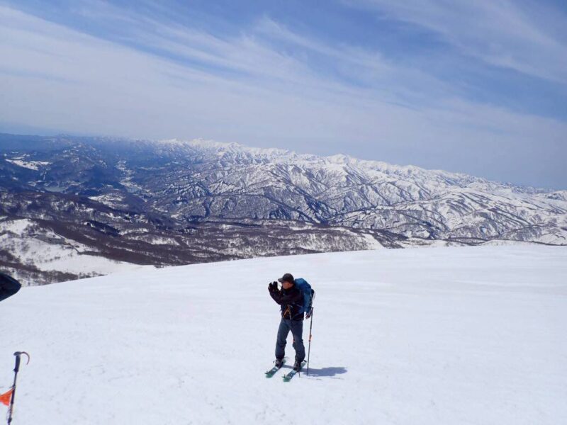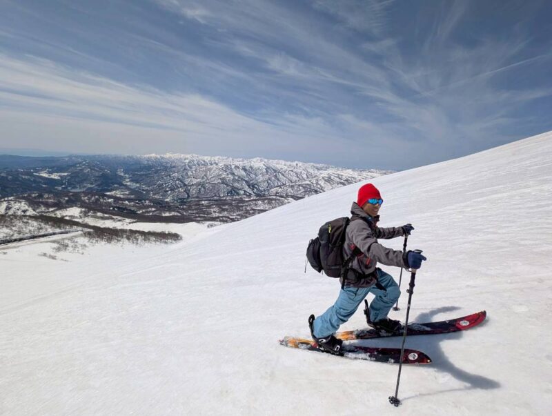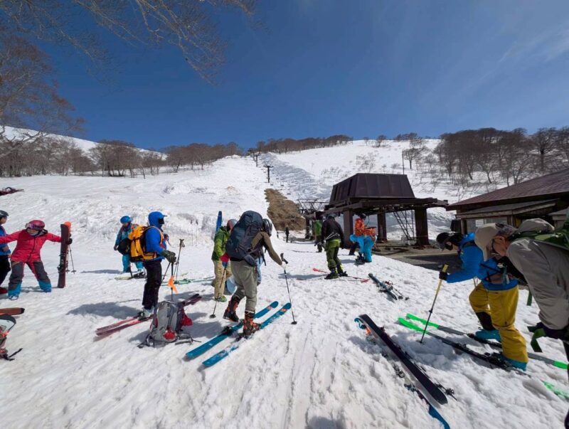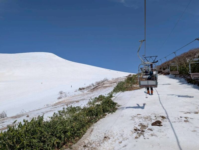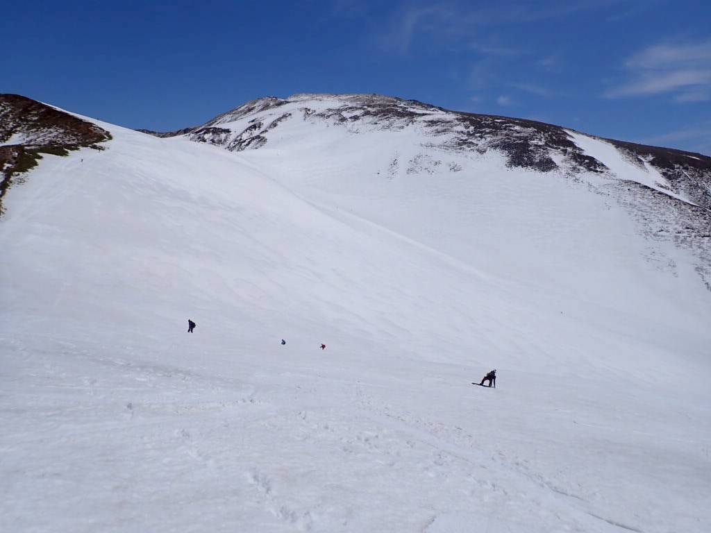 今年は雪解けが早く、このルートもあと1週間ほどが限界とのこと。さらに、前日の冷え込みによって雪面は締まり、例年よりも軽く滑りやすい、月山では珍しいコンディションだった。