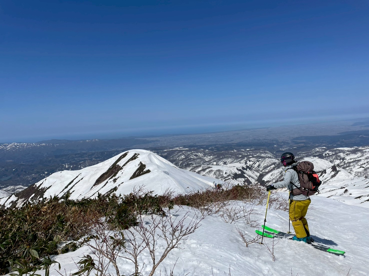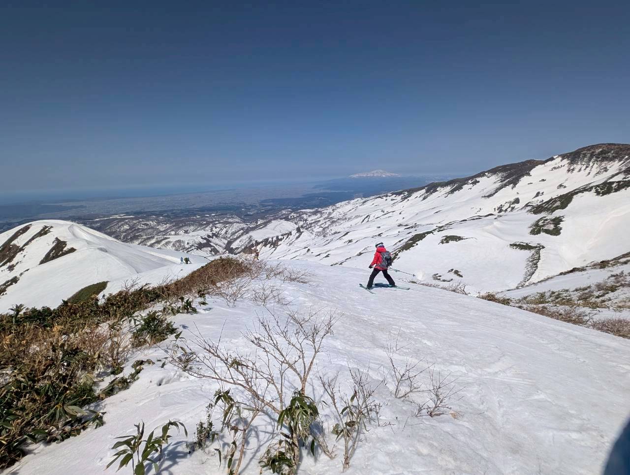 月山リフトトップからスタートし、姥ヶ岳を経て紫灯森、そして湯殿山スキー場へと抜けるルートをたどった。
