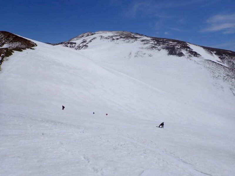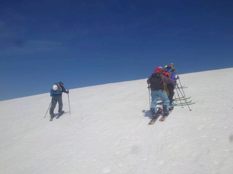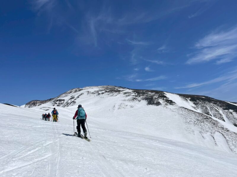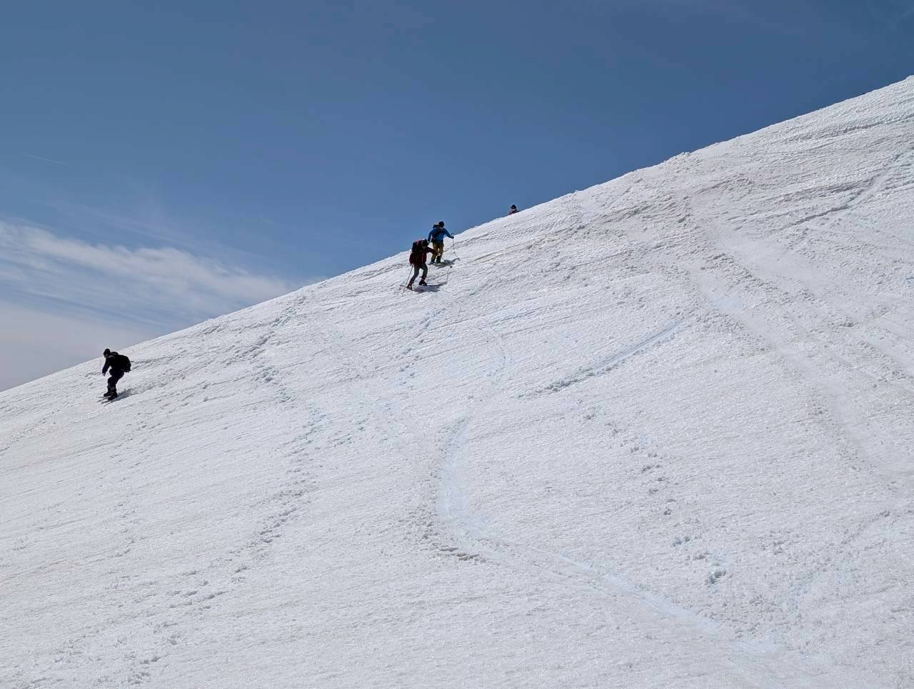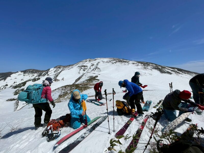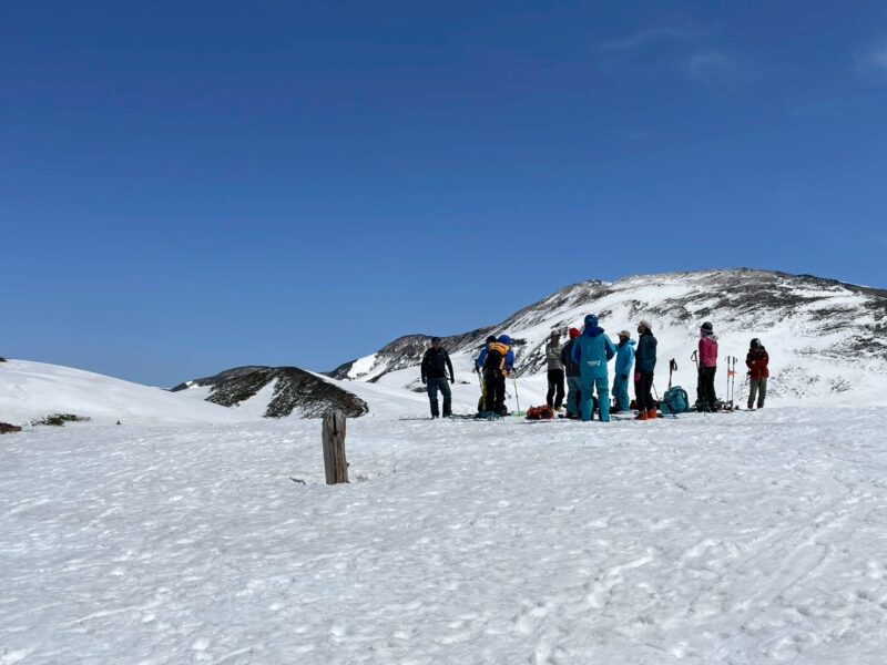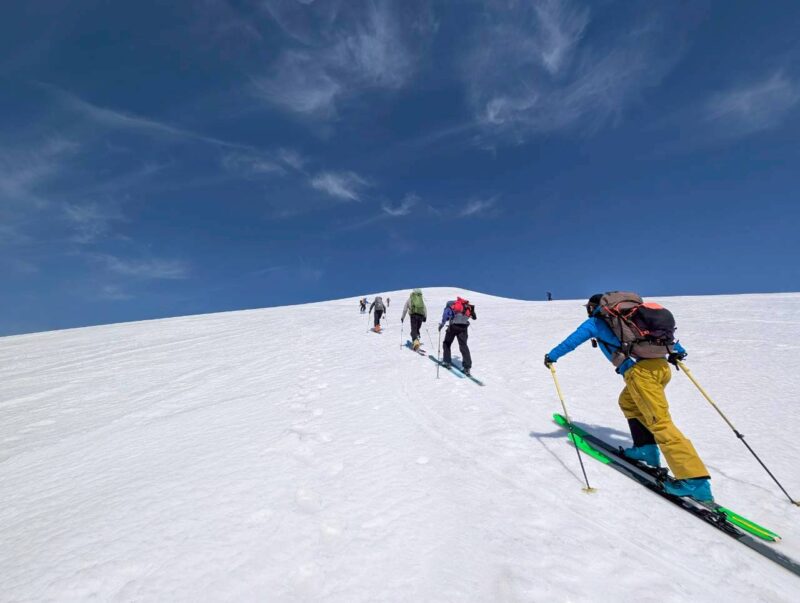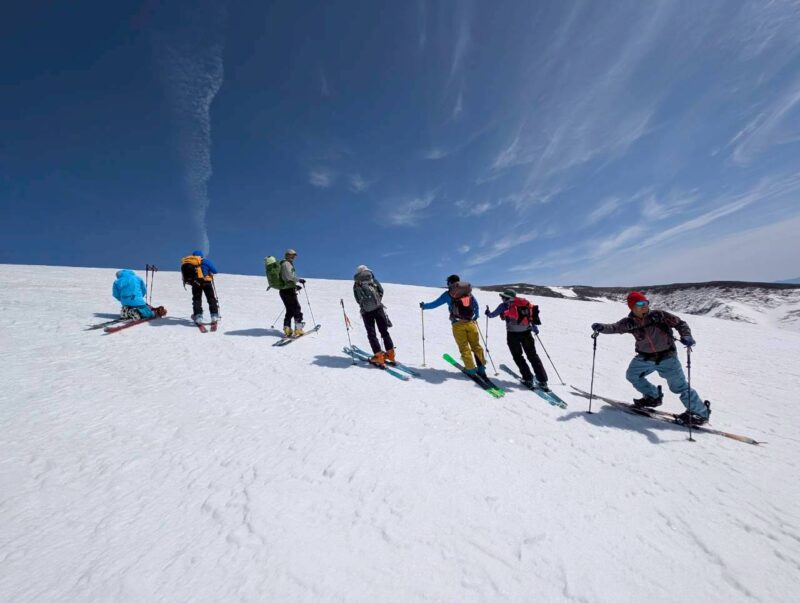 今回の山行は、ガイド2名の的確な判断と案内により、安全にナイフブリッジを通過し、最高のバーンを滑ることができた。