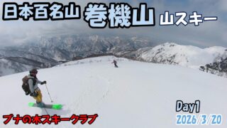 2026年 2026年3月20日|巻機山 山行概要 行動日:2026年3月20日 山域:巻機山 参加者:男性3名、女性2名 行動記録 06:20 宿(雲天)出発 07:10 巻機山登山口 10:45 標高1560m付近 到達 11:00 滑走開始 12:30 宿帰着 山行の様子 こ... 2026.03.20 2026年3月活動記録